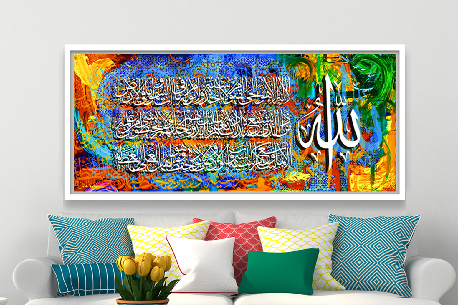 Our art works are masterpieces of Arabic calligraphy in different forms It’s characterized by the artistic contemporary spirit with strong fresh colors along with Arabic decorative units.It is designed by the artist Mohammed Amer. MA Design WLL. Bahrain owns the intellectual property rights, copyright,and marketing rights of these works. MA Design WLL. Bahrain is the only source of these works.
